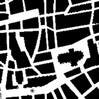Сначала предполагалось сделать по большому контуру, но оказалось, что даже этого будет очень много. В итоге карта утвердилась в размере малого контура. На всякий случай я сделал чёрно-белую маску этого квартала, чтобы удобнее было впоследствии расставлять строения: