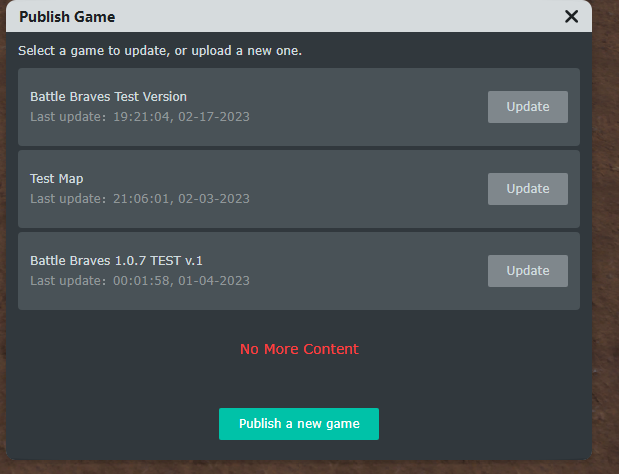 У нас есть 2 варианта загрузки карты на платформу: Multiplayer Test и Upload Game.