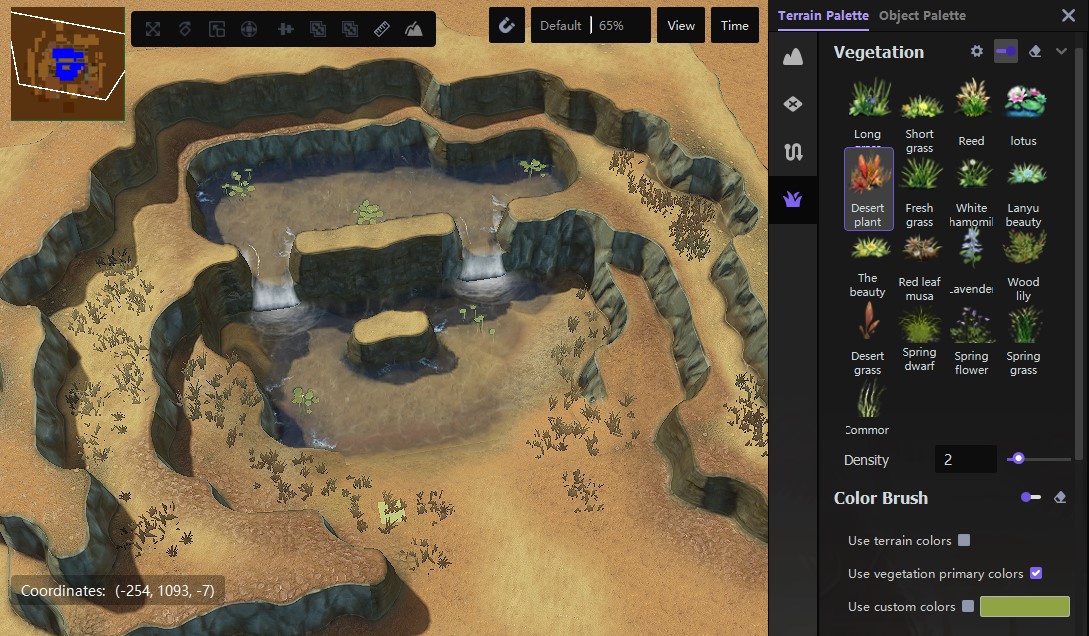 Используя эту панель добавьте растительность окружению, для воды можно использовать лотос.