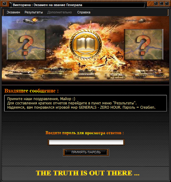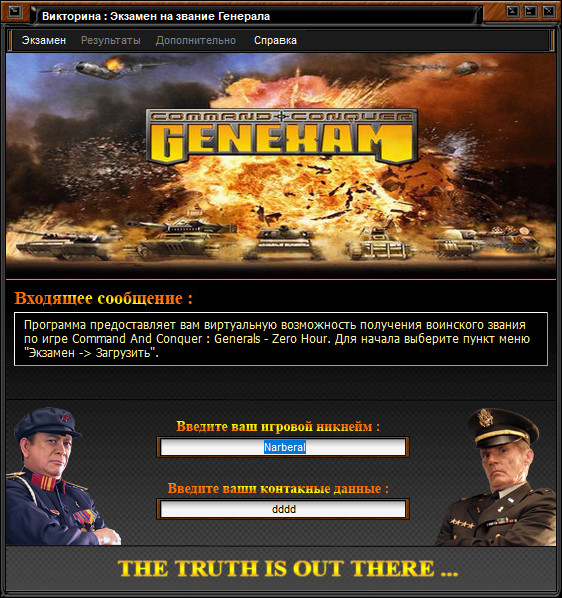 GenExam 2.1 - программа, которая проверяет ваши знания по игре Generals. Викторина на проверку знаний.