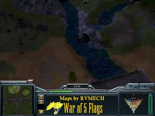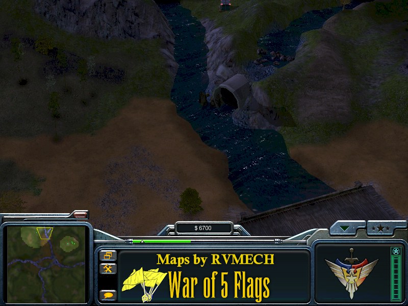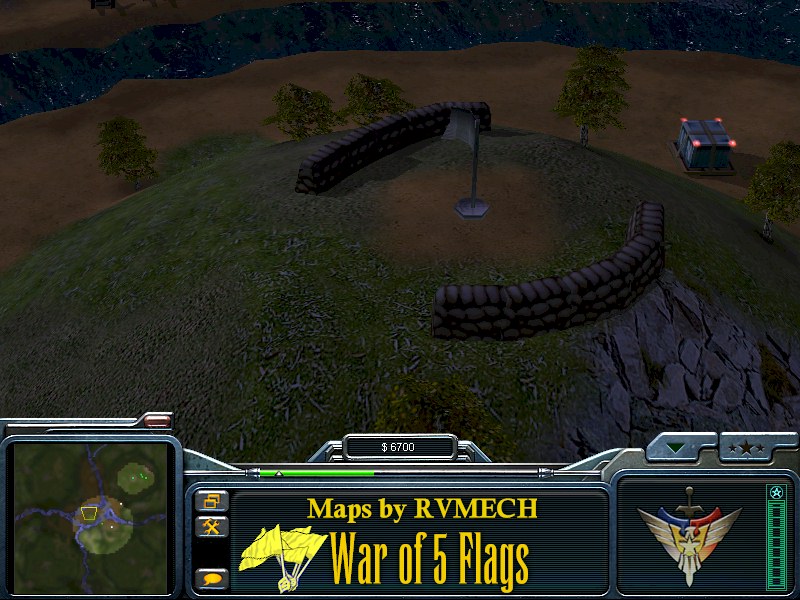 Basically you have two options toward victory. First option is totally crush your opponent as in a normal game. Your second option is to capture all five flags placed around the map. First warrior to accomplish this is the VICTOR! Lighting is set for night in this well made a nicely detailed map. This map was intended to be used for online or lan games, but can be played in Skirmish mode against the computer.