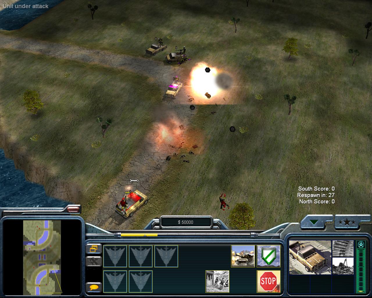 Каждый игрок начинает с 2 джипами. Ничего нельзя строить. Если вы теряете джип, он возрождается. Возрождение происходит каждые 30 секунд (как в режиме "Захват флага" в World of Warcraft).