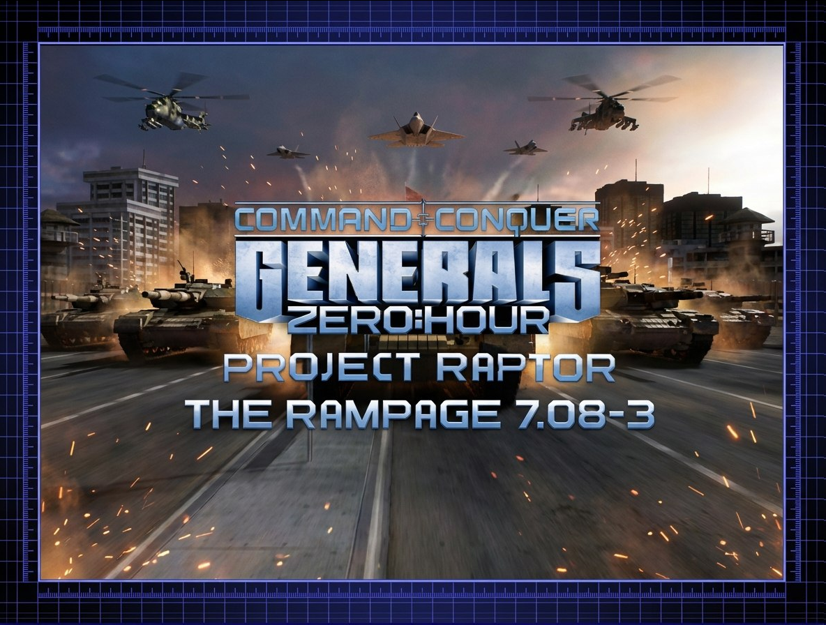 Project Raptor - The Foxtrot Code 08-3 (The Rampage) - это продолжение эпопеи Command & Conquer Generals: Zero Hour с огромным количеством нововведений. В игру добавлена новая фракция - Militia. Militia является нереализованной EA стороной генералов. Project Raptor высоко поднимает планку графики игры, и прежде всего её динамичность. Улучшено микро игры, хотя несмотря на это PR - это воплощение любой возможной стратегии в генералах - от массовых боёв до использования Супер Оружия.