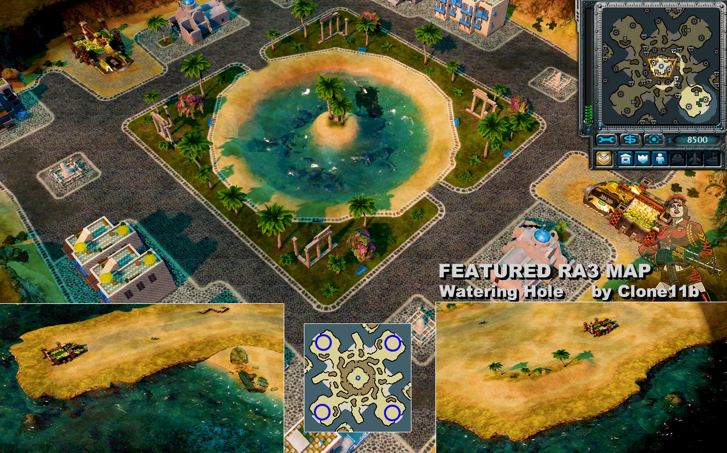 Watering Hole - карта в жанре Skirmish на четырех игроков. Для игры - Command & Conquer: Red Alert 3 и Uprising