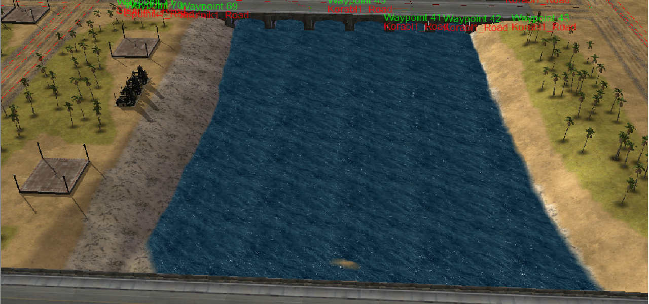 2 игрока vs 6 игроков. По карте катается машинка радар, а по воде плывет пароход.