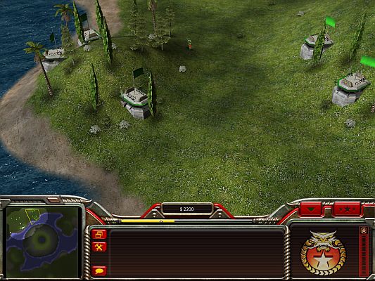 This map is designed for twoplayer games where you don't want the opponent to be able to rush you. The main concept is two identical coastlines on either side of a dead volcano. It is set in a beautiful little island setting with palms, ocean and lots of greenery. The only way from either base to the other's base is along the coastline via a narrow ramp, over the volcano and via a narrow ramp to the opposite side. Ad to make it even harder to rush, there are plenty of bunkers along the road to slow the enemy's advance..