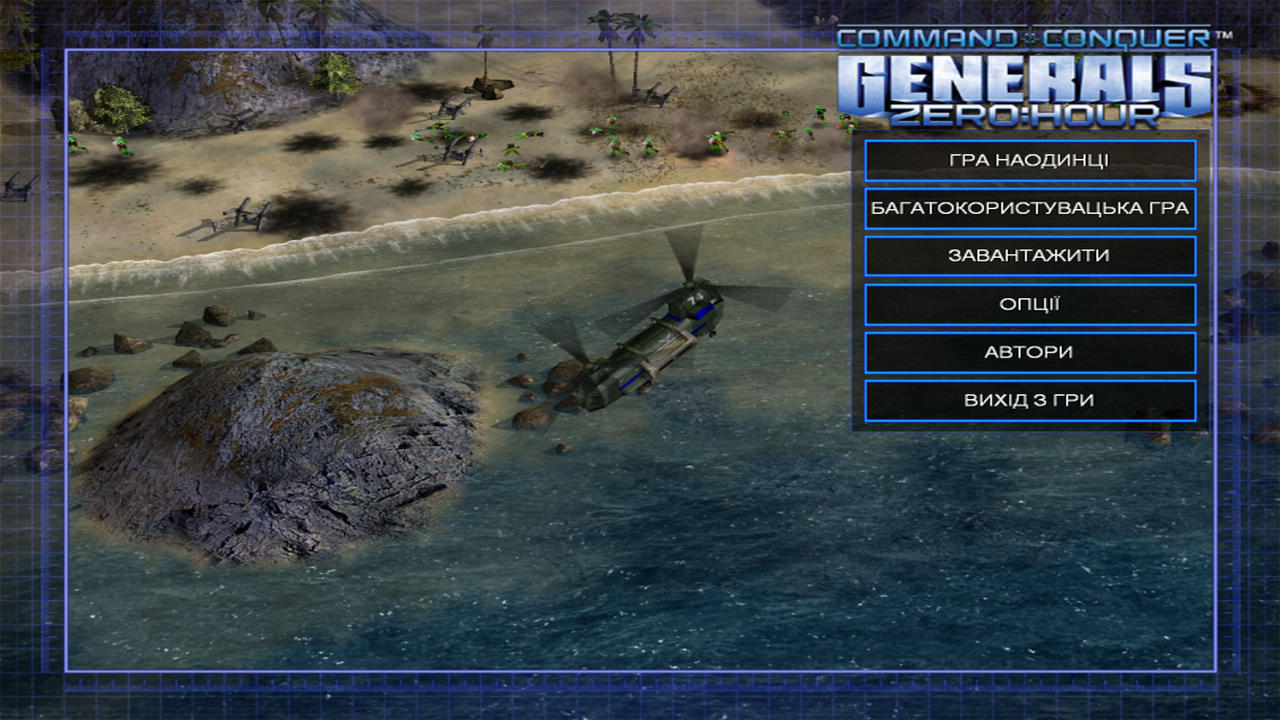 - Распаковать файл 00_UA_Generals.big в корневую папку игры Command and Conquer Generals Zero Hour.