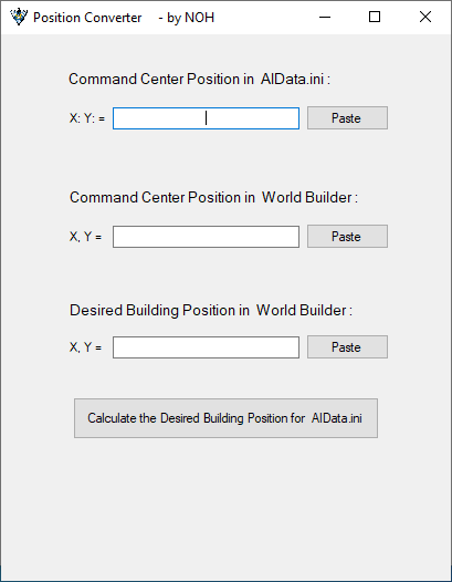 Скопируйте координаты X-Y Командного Центра (Command Center, CC) этой фракции из файла AIData.ini и вставьте их в первое текстовое поле программы.