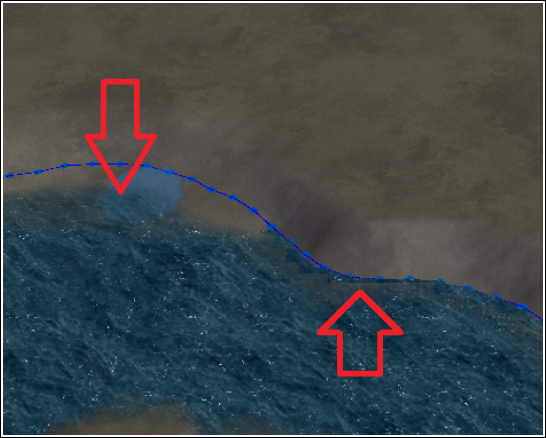 Теперь этим инструментом уберём позорные треугольнички у границ воды, предварительно установив 6-й размер кисти, дабы увеличить скорость работы.