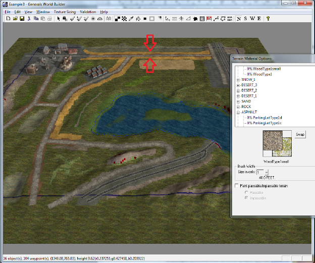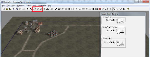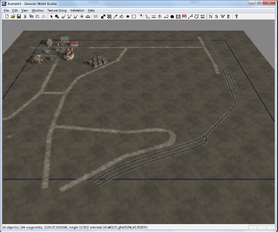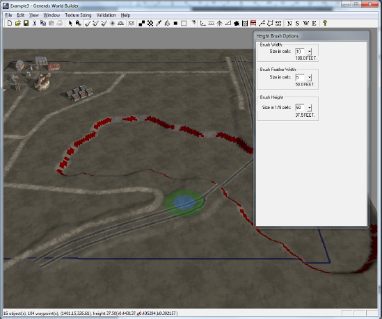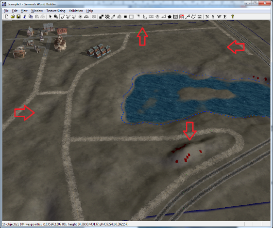 Нарисуем на карте дороги, уныло пытаясь подражать оригиналу. Кстати, при рисовании граница будет постоянно теряться, поэтому лучше нажать Ctrl+I, чтобы заодно увидеть все непроходимые для юнитов места (эти места обозначатся красным),а Ctrl+F установит камеру в положение «сверху».