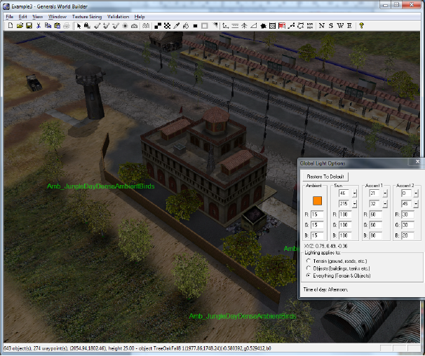 Открываем Edit > Global Light Options. Настройка цвета представляет собой настройку RGB-палитры и настройку акцентов (Accent1 и Accent2). Можно настроить направление света солнца и его высоту над картой.