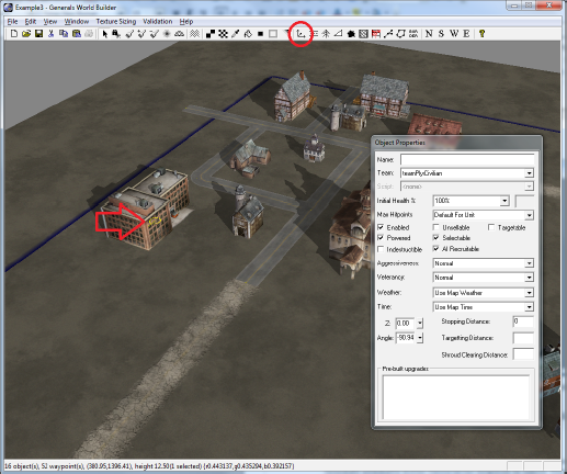 Теперь нажатием кнопки Place Object, в открывшемся окне Civilian > Strucrure, расставим по карте основные здания. Любой установленный объект можно вращать и двигать с помощью колечка у основания.