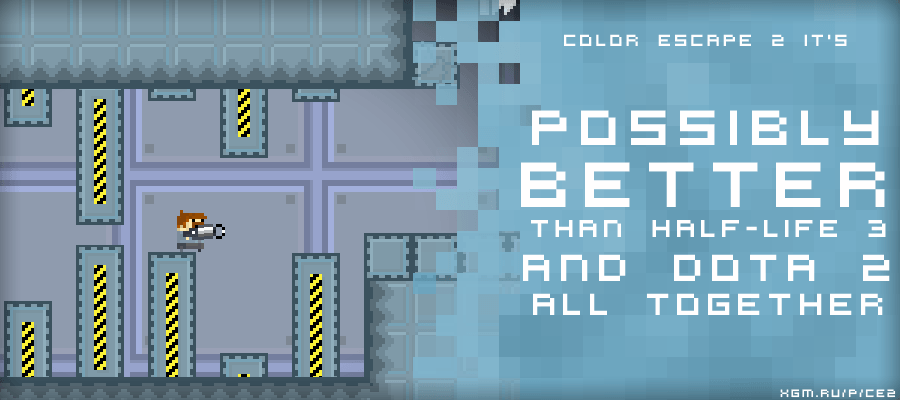 Идея настолько мне зашла в плане механики, что я решил удариться в популярный тогда среди двадэшных игроделов пиксельарт, и освоив Construct2 уже на тот момент, я начал делать Color Escape 2 - сиквел придуманного мной шидевра.