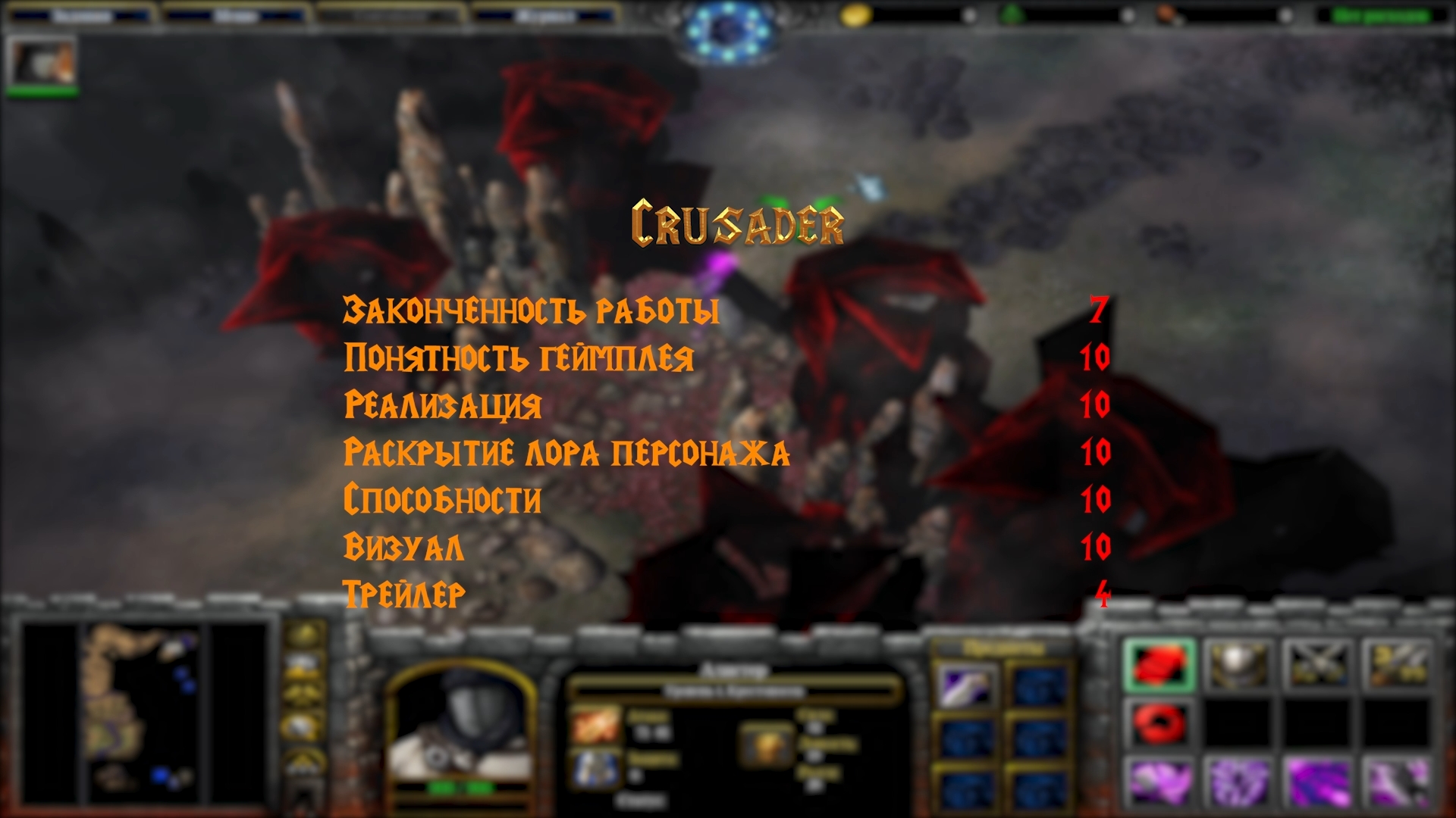 По традиции благодарю авторов, господ Dragonlor и rsfghd . Весьма интересная и необычная карта, пропитанная духом темного фэнтези. Буду с нетерпением ждать когда финальная версия Крестоносца увидит мир, а с ним и прольет свет! Всем приятного просмотра!