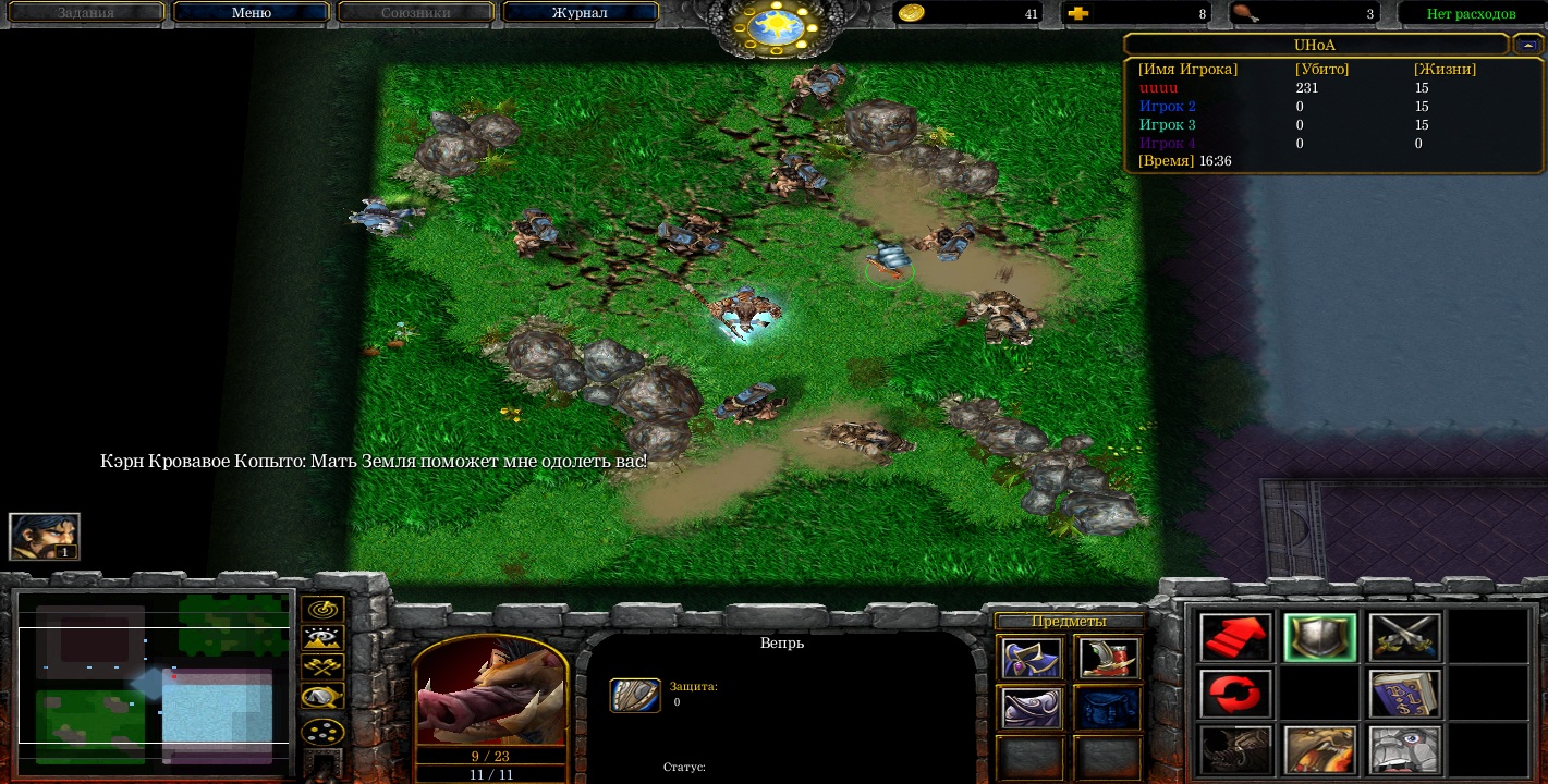 ... отличился в своем проекте Ледовое побоище, сделав скриншоты невероятно "высокой" детализации. Но, тем не менее, приятно увидеть в Warcraft'е интерпретацию исторического сражения Александра Невского против Ливонского Ордена. Помимо скриншотов, автор указал и список воинов каждой из вражеских сторон - можно заметить, что баланс не сильно отличается от стандарта (для меня простота - это +). Ах, да, сюжет - "в карте есть 2 стороны: орки и ополчение. Если вы будете на стороне ополчения, вам нужно ставить ловушки и защищаться от толп орков 15 минут, всех солдат ополчение будет возрождать паладин, а у него только одно перерождение, если он умрет ополчение проиграет. Оркам предстоит прорвать оборону людей. Все герои орды могут перерождаться множество раз". Автор, а где скриншот с общим видом на карту? Зря убрал