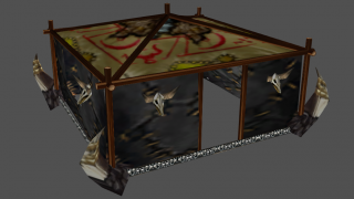 0/4 - Текстуринг. Стандартные Warcraft 3 текстуры. Сами текстуры на этой модели выглядят очень размытыми. Странное решение с текстурой черепов в нижней части палатки.