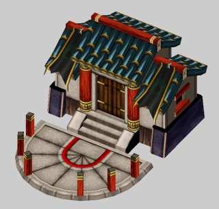Прошу сразу обратить внимание на очень четкое и красивое сочетание красок в самом здании. Каждая деталь выполнена очень четко и оставляет после себя чувство удовлетворения. Особенно мой глаз радует цвет древесины - создатель работы подкрутил цвет так, чтобы он соответствовал восточному стилю пандийских народностей. Она идеально соотносится с условиями конкурса. Наверное, единственный недостаток, который есть в исполнении модели - минимальное присутствие тимколора. Я считаю, что его можно было бы добавить и на ткань, находящуюся на крыше. Кстати говоря, стоит заметить, что в игре отпечаток лапы светится зеленым цветом - к сожалению, скриншоты из редактора это не передают (смотрите последний скриншот). Данная вариация выглядит крайне удачной в отношения создания герба панд. Ее можно было бы задействовать и в качестве одиночной модели.