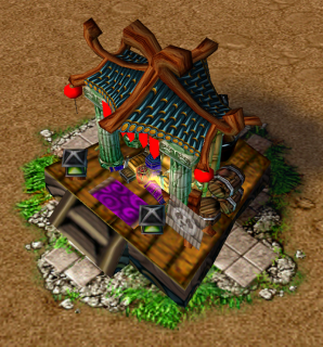 Анимация строительства модели (bitrh) здесь стандартная от ночных эльфов. Автор, к сожалению, решил не вносить никакие изменения. Интересным вариантом, к примеру, можно было считать что-то из бамбука или появляющаяся тележка, которая разгружает товары прямо на полки магазина.