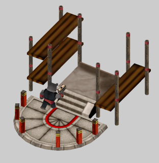 Анимация строительства модели (bitrh) сделана своя уникальная - со светлым бамбуком и деревянными перекладинами. К сожалению, как я это писал в других работах, светлый бамбук не очень по гамме сочетается с остальными видами дерева. Поэтому перекладину лучше было бы сделать из связки бамбука. И не хватает эффектов строительства - дыма, движения всяких инструментов и т.п. для оживления анимации. Было бы интересно, если бы строительные леса по мере строительства меняли свое положение относительно башни, как это сделано в стандартных моделях.