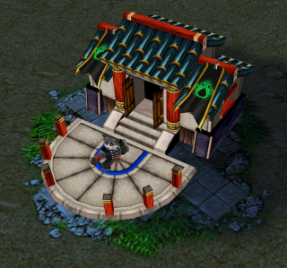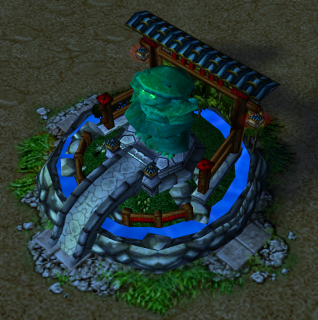 Анимация строительства модели (bitrh) здесь стандартная от Альянса. Автор, к сожалению, решил не вносить никакие изменения. Но было бы неплохо увидеть что-то более оригинально-уникальное - к примеру, все те же бамбуковые леса, анимацию наполнения водой у пруда, какие-нибудь божественные эффекты-вспышки на месте статуи.