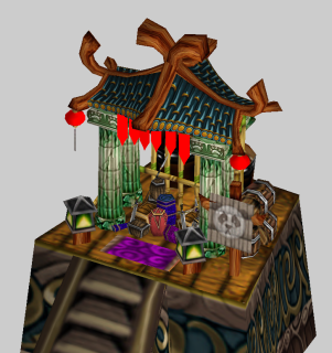 Dragonlor, островок посреди небольшого озера с мостиком, гениально. Подвел лишь сама статуя, но в рамках SD графики я даже не знаю как можно было бы лучше вывернуться. Исходя из логики, нефрит для статуи пандаренов вполне подходит, но возможно не хватает теней... в общем я не знаток моделинга, просто написал что смутило) Модель отличная, молодец.