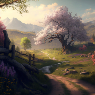 - Создать ресурс жанра LandScape в любом желаемом проекте, на тему Цветущая весна, примеры проектов: