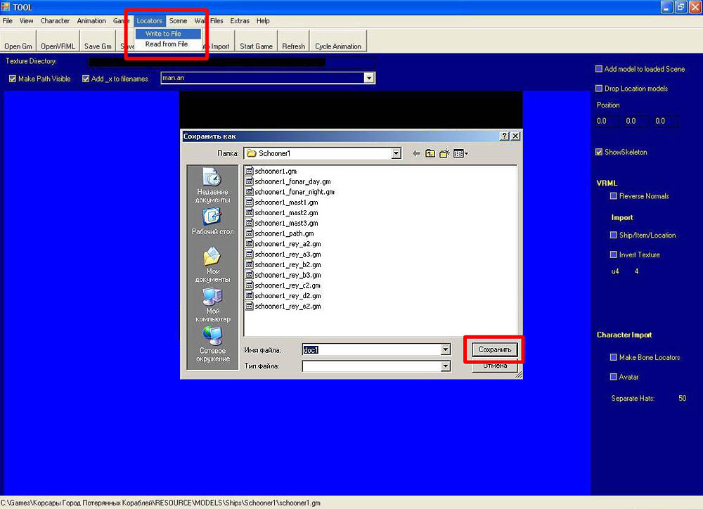 Конвертер локаторов работает с файлом, который получится после того как вы запишете в него локаторы с нужной модели при помощи TOOL (Locators > Write to file)