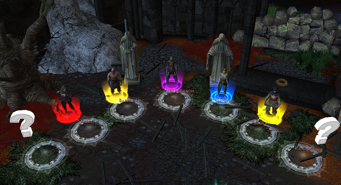 На данный момент доступно на выбор 5 героев: Варвар, Чародейка, Ассассинка, Паладин и Некромант.