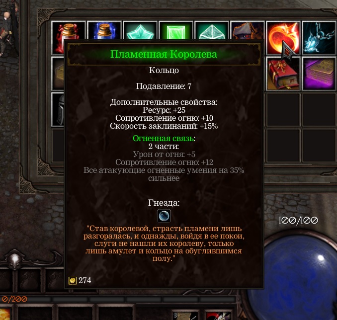 Они будут отличаться как по качеству, так и по специальным суффиксам, от которых зависит какие возможные параметры будут на предмете. Например, есть бонусы, которые повысят уровень определенного умения, или целой категории умений. Так же в предметах возможно наличие слотов под камни, которые дают определенный эффект если вставить их в определенный тип предмета.
