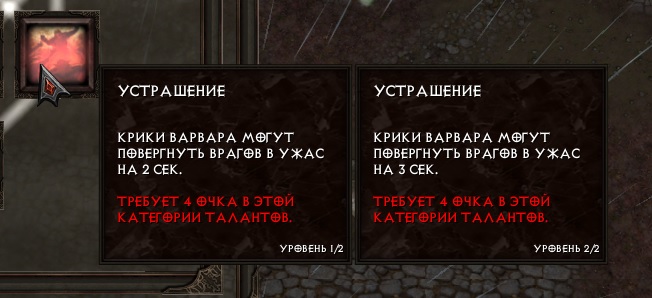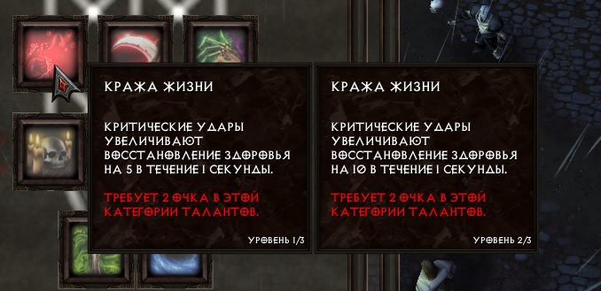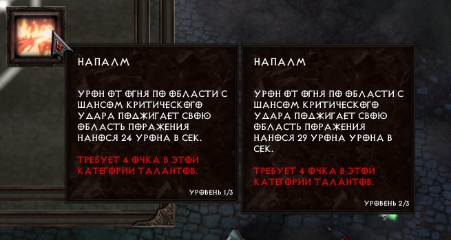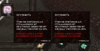 Каждый новый уровень дает 1 очко талантов. На каждую основную категорию умений существует ветка талантов, так или иначе касающаяся тематики соответствующей категории.