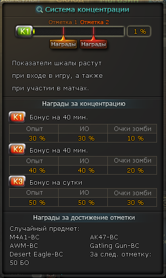 Новые капсулы - как всегда (АВМ Магма, кстати, ничего так смотрится). Наконец-то, новые оружия за ИО. M14 - нечто похожее на M4A1, но с более лучшей точностью (я уже купил эту пушку и скажу, что остался доволен - звук только громкий). Steyr Elite - очередная снайперка. Не очень, для такого оружия слабый урон. Единственный плюс, который я заметил - тихая стрельба. Пригодилась бы на режиме Призраки, если бы не урон. Что касается новой системы, насколько я понял, она работает так, что чем дольше ты сидишь в игре (за один заход) - тем больше ты получаешь бонусов. Основные бонусы - на опыт, ИО и бонусы на режиме Зомби. Попадаются и случайные бонусы - любая из пушек, которые можно взять за БО или 50 БО. В целом, нововведение мелочное - но приятное.