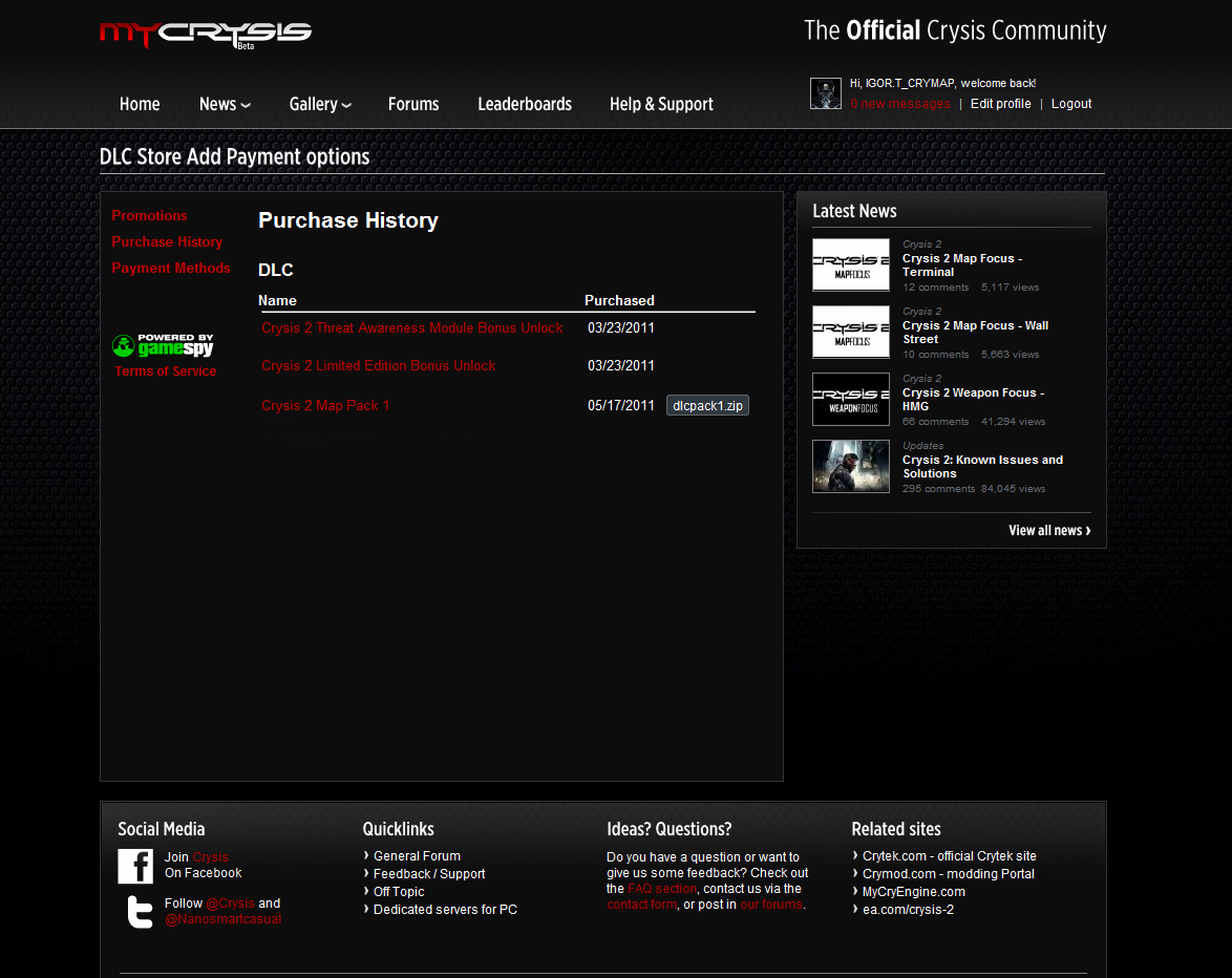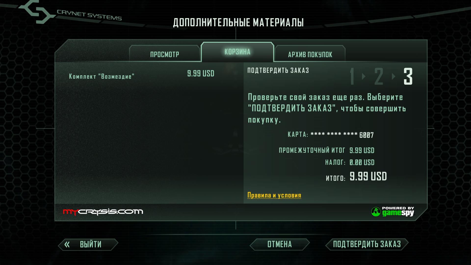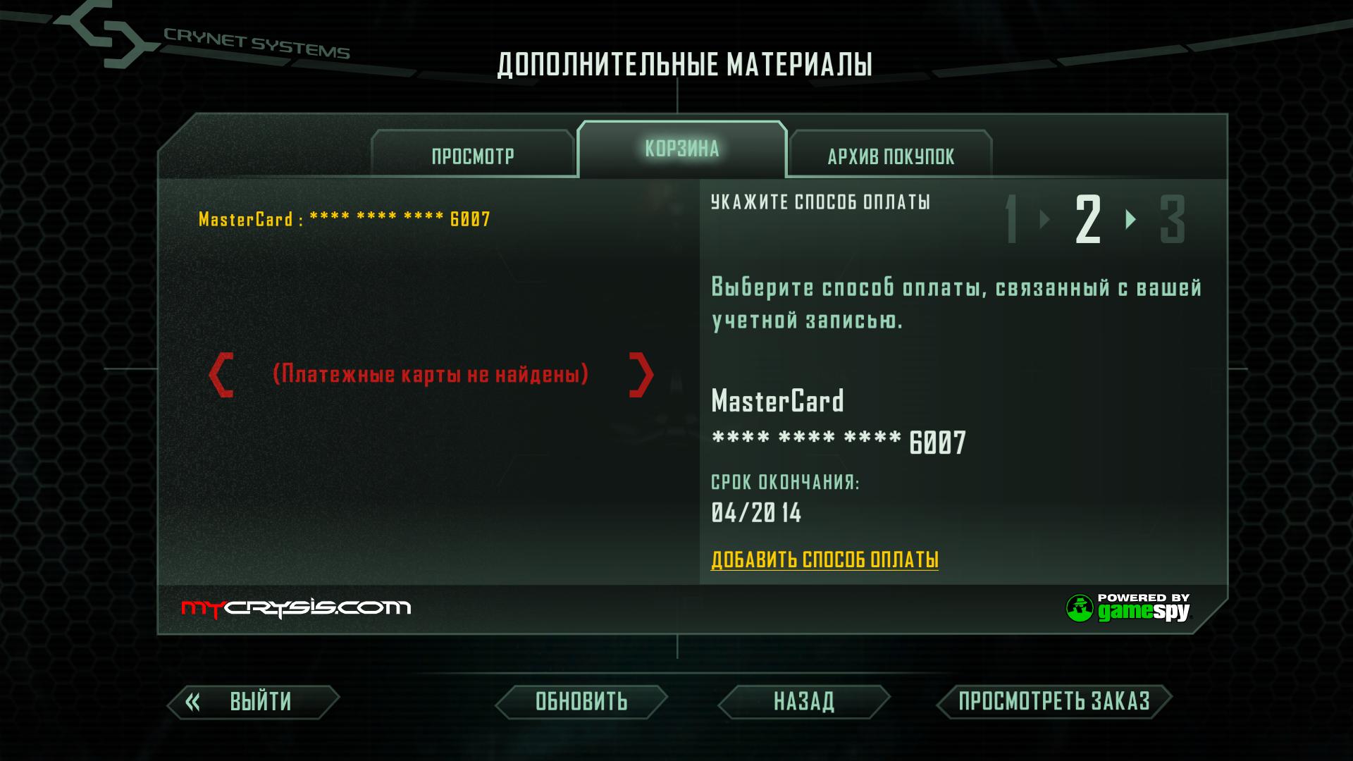 Примечание: перед покупкой,на сайте mycrysis.com не забудьте указать способ оплаты.