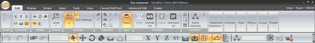 Спасти ситуацию, могли бы панели инструментов, которые по умолчанию были скрыты. Но и тут не сложилось. Дело в том, что пиктограммы настолько огромные, что даже в разрешении 1680x1050 занимают приличное количество места. Про разрешение 1280x800 которого хватало для комфортной работы в Sandbox 2, я вообще молчу. Причем кнопка, отвечающая за изменение размера, этих самых пиктограмм, не работает. Впрочем, как и некоторые другие кнопки.