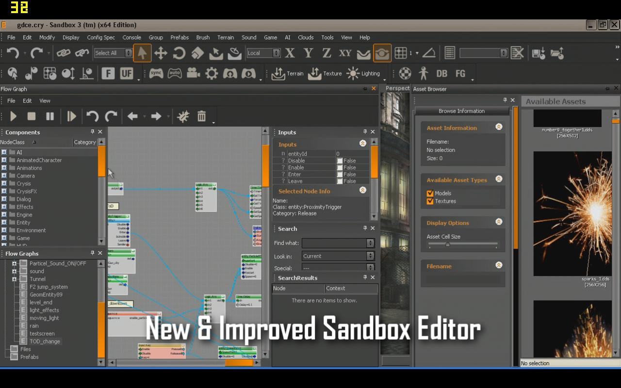 При том, что старая версия Sandbox 2 держит в кадре 1.500.000 треугольников, сохраняя высокий показатель FPS, и даже не думает лагать. Стоит отметить, что Sandbox 2 работает в DX10 режиме, а Sandbox 3 в DX9. Если бы утекла рабочая версия редактора, он был бы уже отшлифован и в нем явно был бы разблокирован DX10-11 режим.