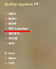Имеется возможность скрытия меню и запоминания выбора. Чтобы вновь открыть меню надо ввести в чат guns.