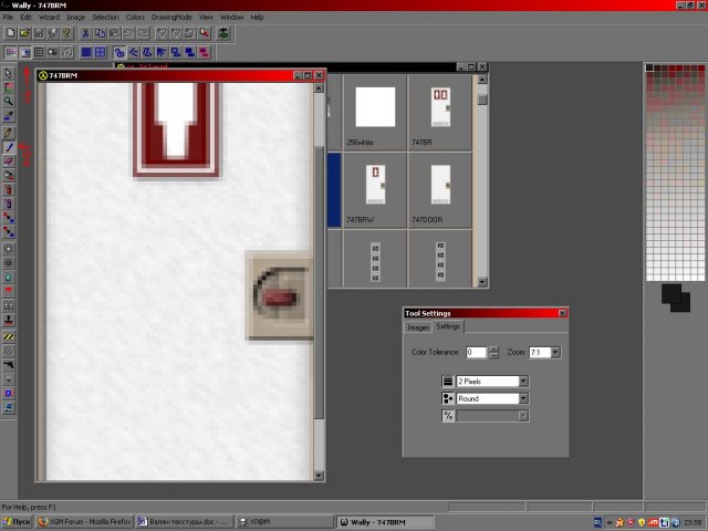 - Вот перед нами открытый архив текстур. Слева видим список текстур из странных названий, справа-массив из визуального ряда самих текстур. Допустим мы хотим изменить текстуру и что то в ней изменить. Выбираем текстуру(мой выбор 747BRM) и нажимаем на ней правой кнопкой мыши, затем Open. Открывается выбранное изображение, которое поддается редактированию в самом Валли. Чудно.