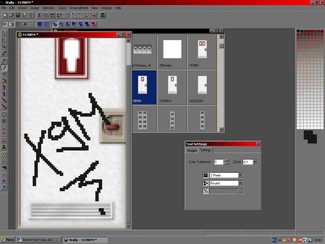 - Видим нечто похожее на графический редактор, и поэтому особо не пугаемся а идем сразу во вкладку Files-Open… и ищем интересующий нас wad-файл в папке \cstrike. Я выбрал cs_747(это вад используется в одноименной карте, с самолетом). При открытии оказывается что в этом вад-файле куча красивых изображений, то есть выходит что вад – это некий архив текстур. Это прекрасно.