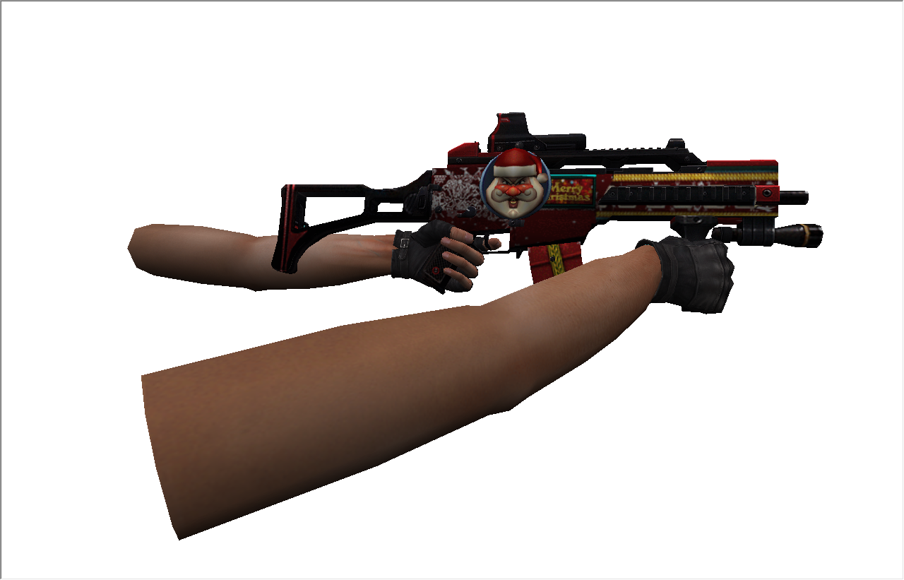 I would like to showcase the BALROG-V assault rifle model, which features a Christmas-themed texture and is styled for the New Year. The author has transformed an ordinary assault rifle — originally having a distinct red color scheme — into a festive holiday-themed weapon.