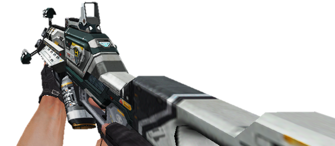 Это футуристическая штурмовая винтовка, которая может стрелять 70 выстрелами из лазерных лучей. Излучаемый лазер со временем будет наносить больше урона. Технология, которую использует это оружие, неизвестна.
