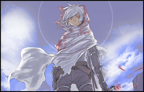 Твердо держа в руках свой фламберг, Гиацинт закричал. Он знал, что его враг еще жив - и желал всеми фибрами души покрошить его в порошок. По лицу тек пот, а сердце ходило ходуном. Враг скрывался где-то в дыму, готовясь напасть. Гиацинт повернулся налево... направо... сделал оборот вокруг. Похоже, паника захлестнула его. Он не мог спокойно стоять на месте, стараясь не пропустить ни малейшего движения в дыму. И вот лучи солнца осветили облако пыли. Он мог лучше осмотреться, пока... пока не заметил два красных глаза, которые были позади него. Гиацинт почувствовал на животном уровне, что перед ним был настоящий зверь в засаде. По коже пошли мурашки. В мгновении ока Белл вырвался из облака пыли. Гиацинт резко развернулся, чтобы ответить на удар. Два ножа и один кривой меч столкнулись, оставив после себя искры.