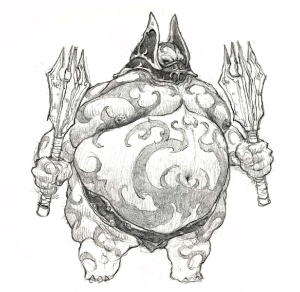 Толстяк вызывается заскриптованной сценой. В игровом видео, когда варвар бежал через подземелье, и приблизился к кругу c пятью темными культистами, высвобождавшими энергию для вызова демона, стало видно трех юнцов танцевавших в круге. Они стали взрываться один за другим и тогда, из их плоти и крови появился демон.