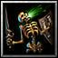 Если в радиусе 800 от героя умирает противник, то с шансом 5% от разума (не менее 5% и не более 40%) из него появится скелет, который имеет 200 / 350 / 500 / 650 / 800 здоровья, 40 / 65 / 90 / 115 / 140 силы атаки, 4 / 7 / 10 / 13 / 16 защиты, 1.75 скорости атаки и 300 скорости передвижения. Скелет живет 30 секунд и не может появляться не чаще, чем раз из 5 монстров. При активации, герой уничтожает всех подконтрольных ему скелетов, восстанавливая по 200 / 250 / 300 / 350 / 400 здоровья и вдвое меньше маны за каждый уничтоженный скелет.