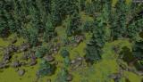 Сначала я создал кисть деревьев. Нажав лупу, перешел в Копилку, где нашел вариации этих елей и шифтом выделил их, затем я нашел пару кустов и небольшие камни и тоже их выделил. После того, как я собрал нужные декорации, я нажал Accept, и выбранные мною объекты поместились в кисть. Т.к. камней было много, то пришлось снизить их приоритетность, уменьшив их содержание в кисти. Далее я проделал те же операции с большими камнями и растительностью. Итого, у меня получились 3 кисти: деревья, камни, растительность. Честно сказать, распыляя их редактор жутко тормозит, но лес получился отменный.