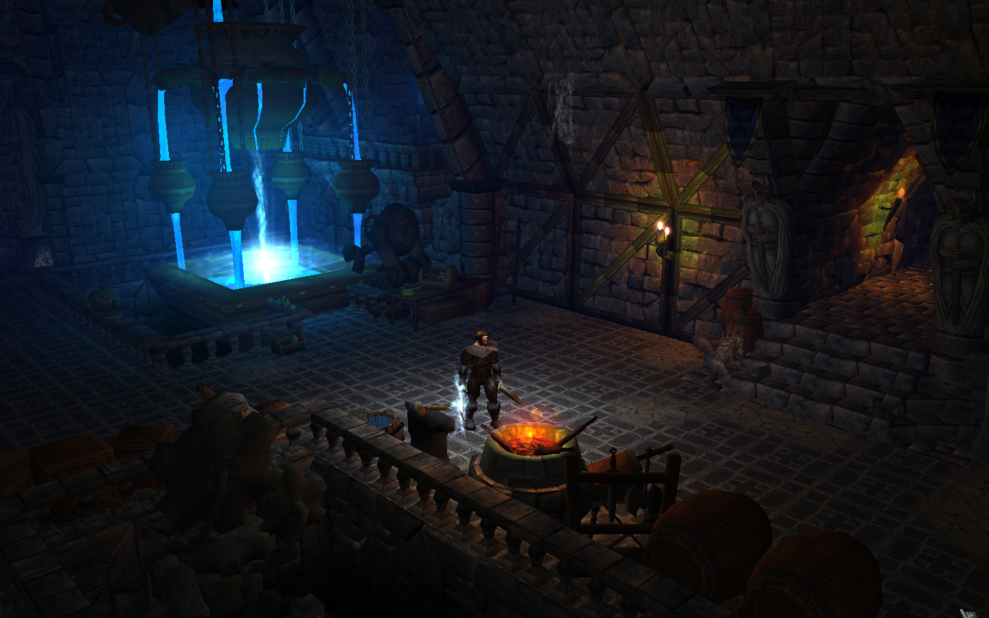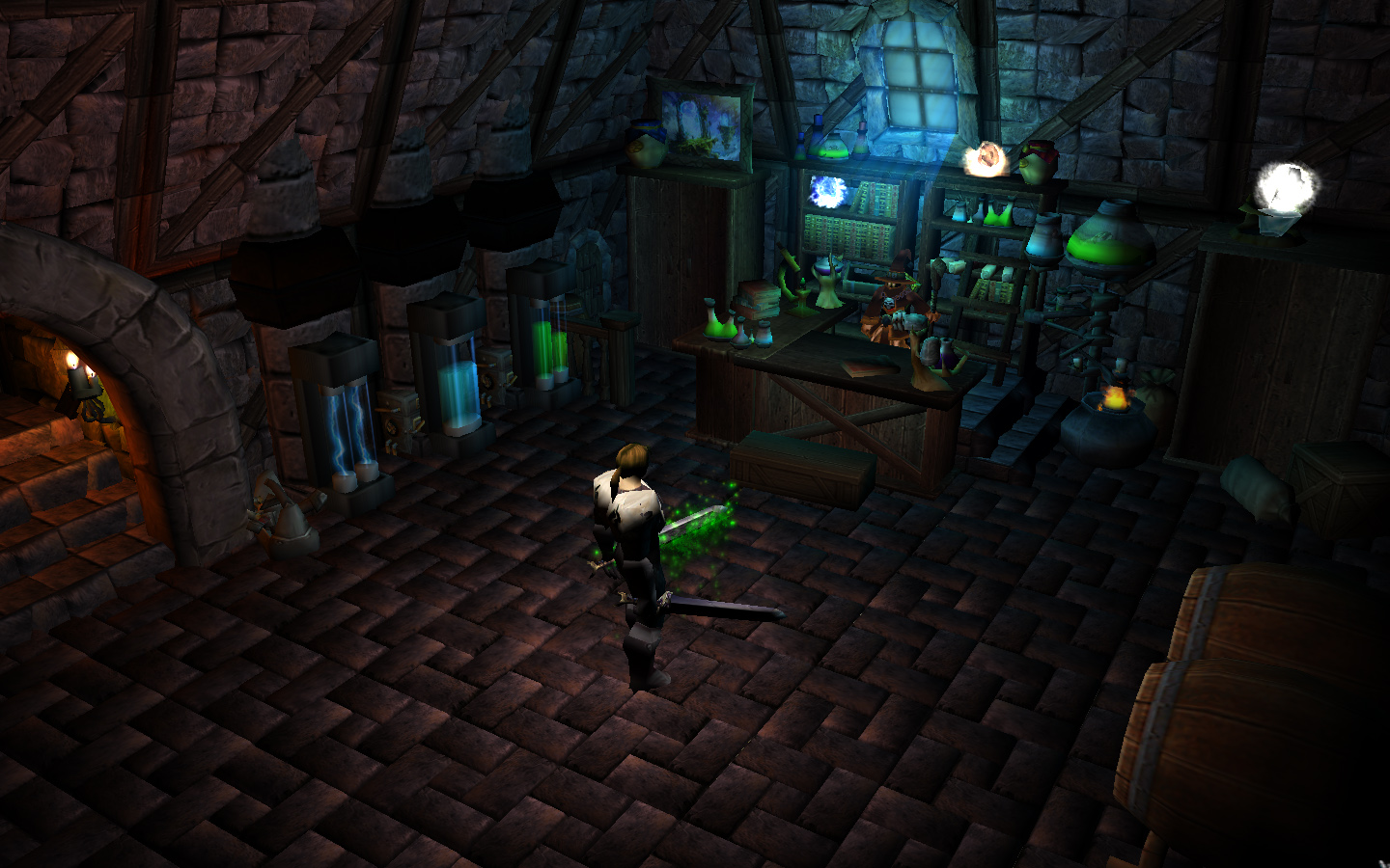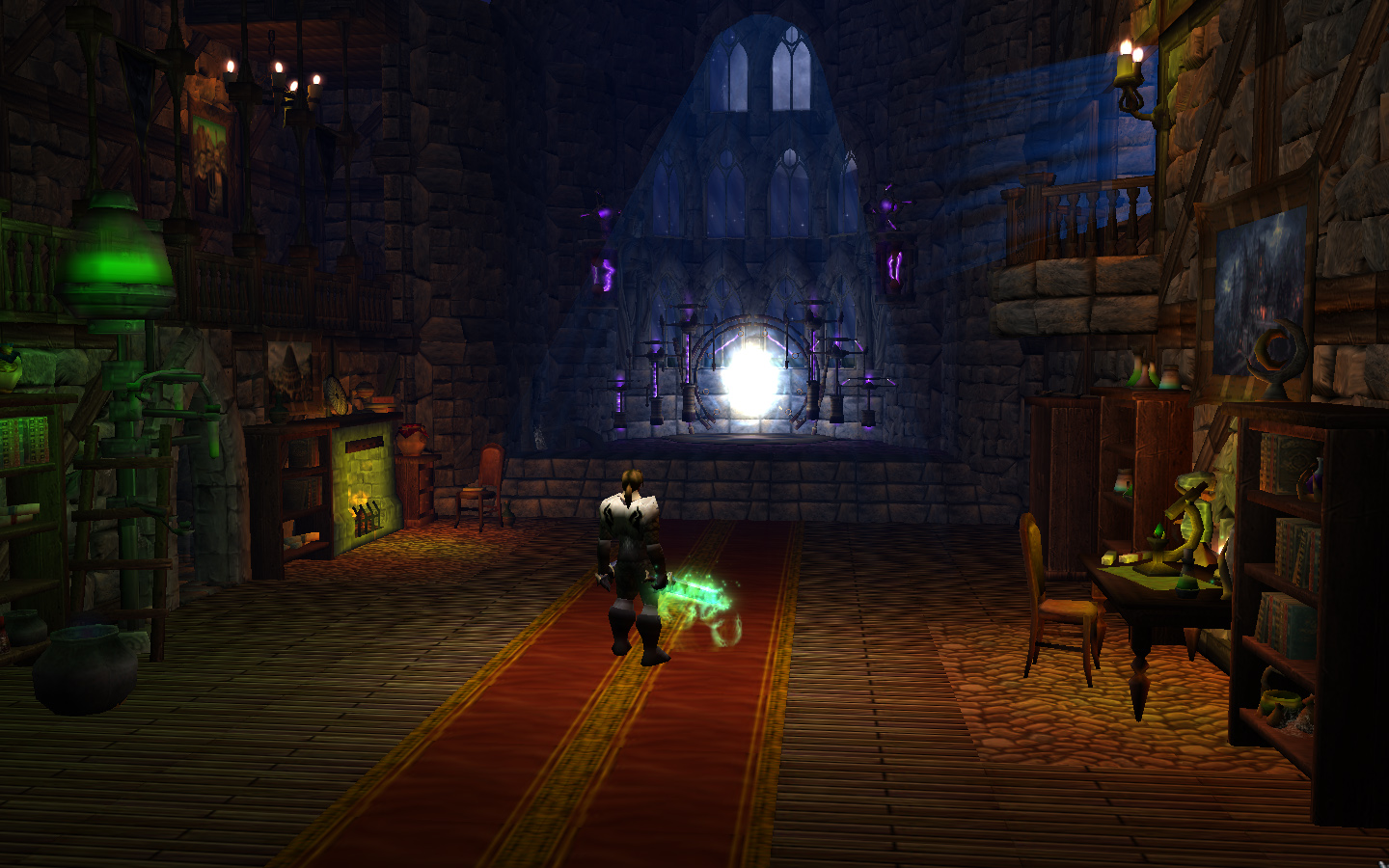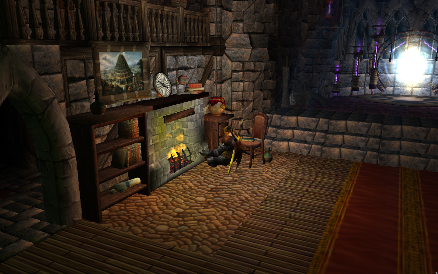 "Я нашёл замок. Он действительно был окружен еле заметной аурой, обволакивавшей стены и узорчатые пилястры. Как я и думал, барьер меня пропустил и я смог войти в холл. Крайне темный и пыльный холл. Не могу сказать, что этот замок древний, скорее просто недавно заброшенный. Над одной из массивных дверей было написано "Артефакториум". Не знаю, что это значит, но внутри я нашёл ту самую сферу из сна. Я подошёл поближе к сфере и... ничего не произошло. Сфера молчала. Немного удивлённым я вышел из Артефакториума и отправился дальше осматривать замок. В одном из залов из стен торчали массивные механизмы, уходившие или глубоко под землю, или в соседний зал, в котором оказалась конструкция, похожая на портал. Определенно неактивный портал. Сейчас я сижу перед ним. В этом зале есть несколько полок со свитками, стол, камин и какие-то алхимические приспособления. Я зажёг настенные факелы и свечи. Довольно уютно."