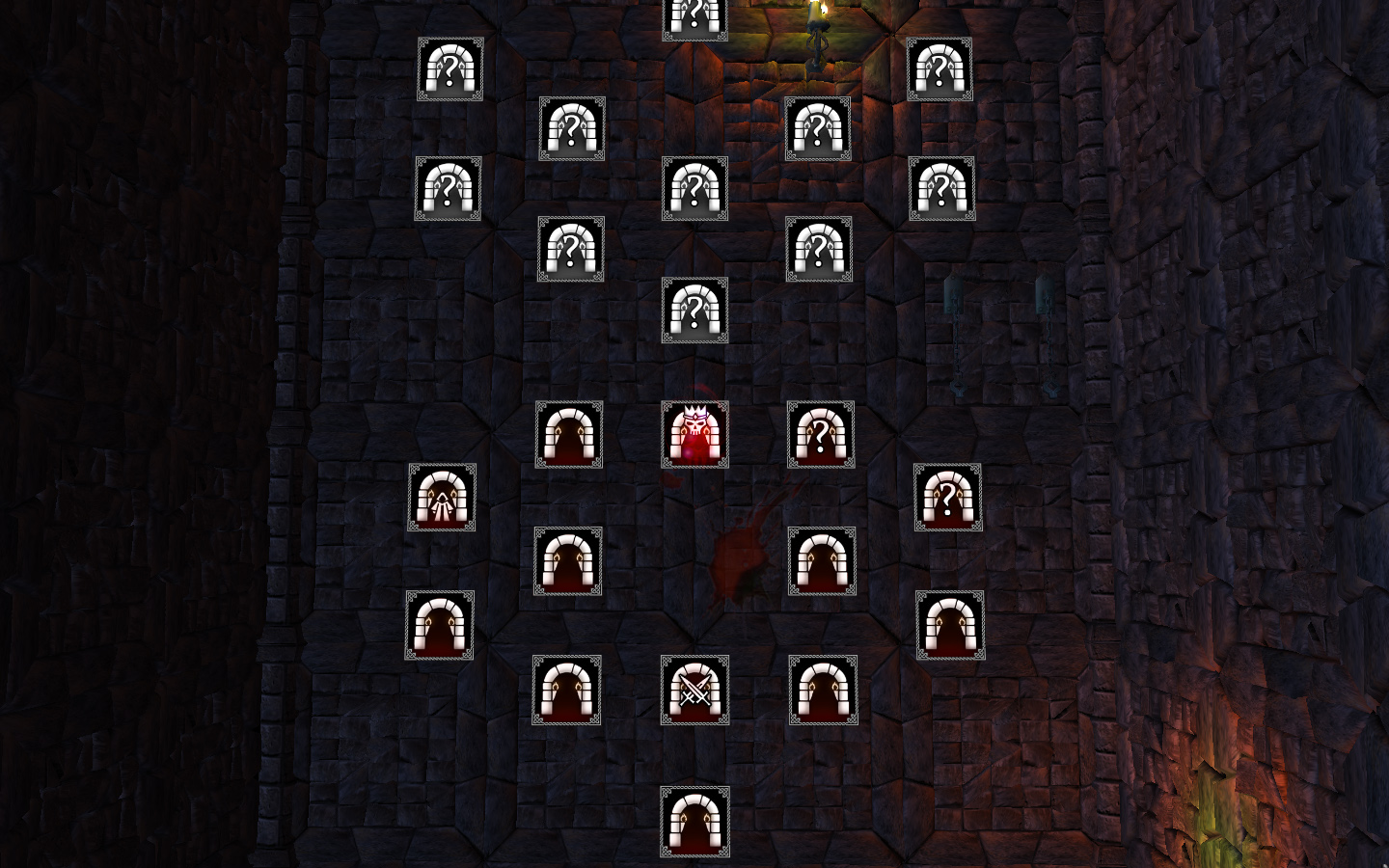 - На карте присутствует 60 различных уровней между которыми можно перемещаться и исследовать. Среди них обычные генерируемые подземелья, арены, торговцы, босс-уровни и прочее.