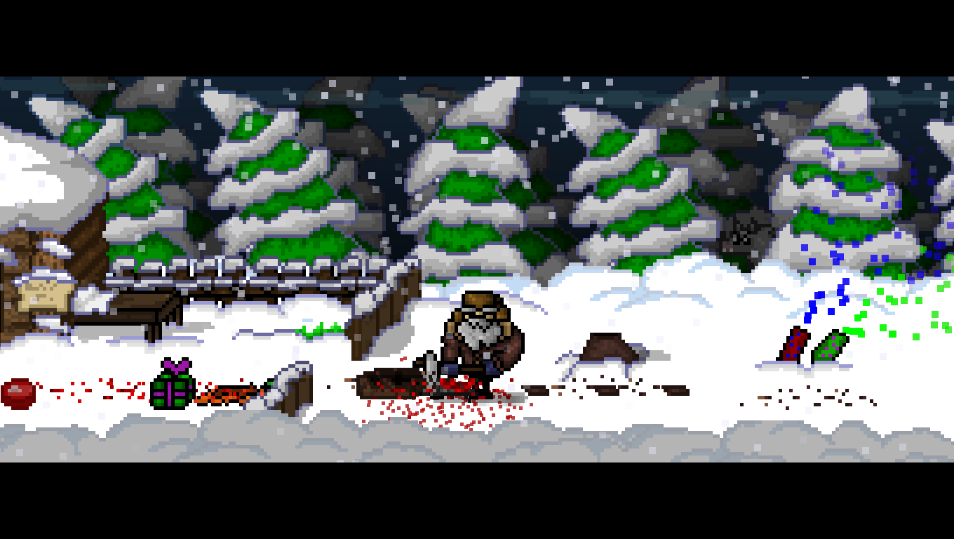 У меня не получилось пригласить всех на ёлку (только кошку и волка, кажется, я что-то сделал не так). Всё ещё не догадался, как достать улей. Потом попробую ещё.