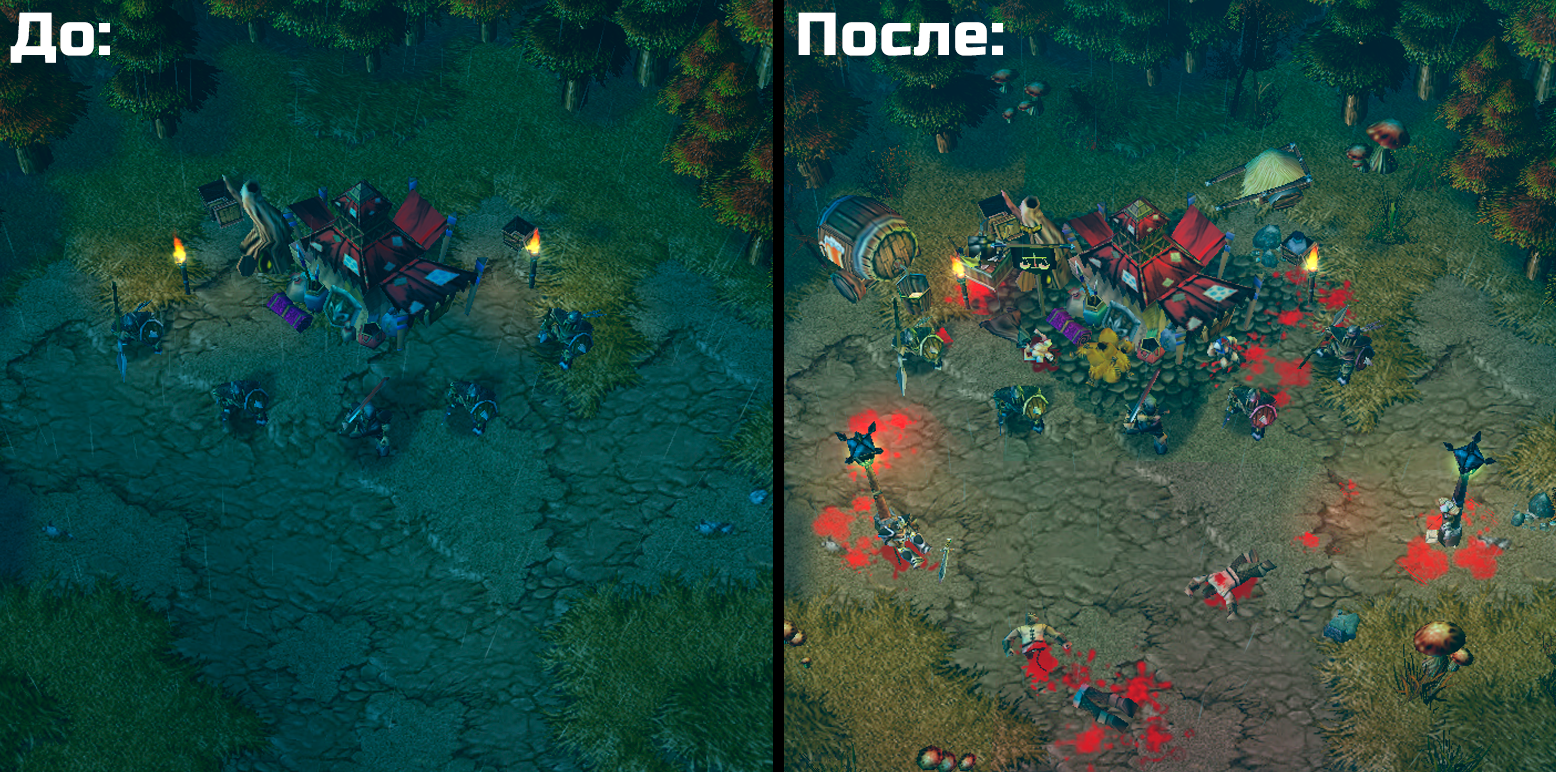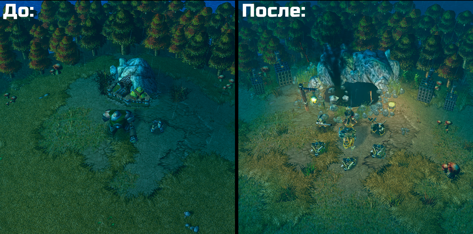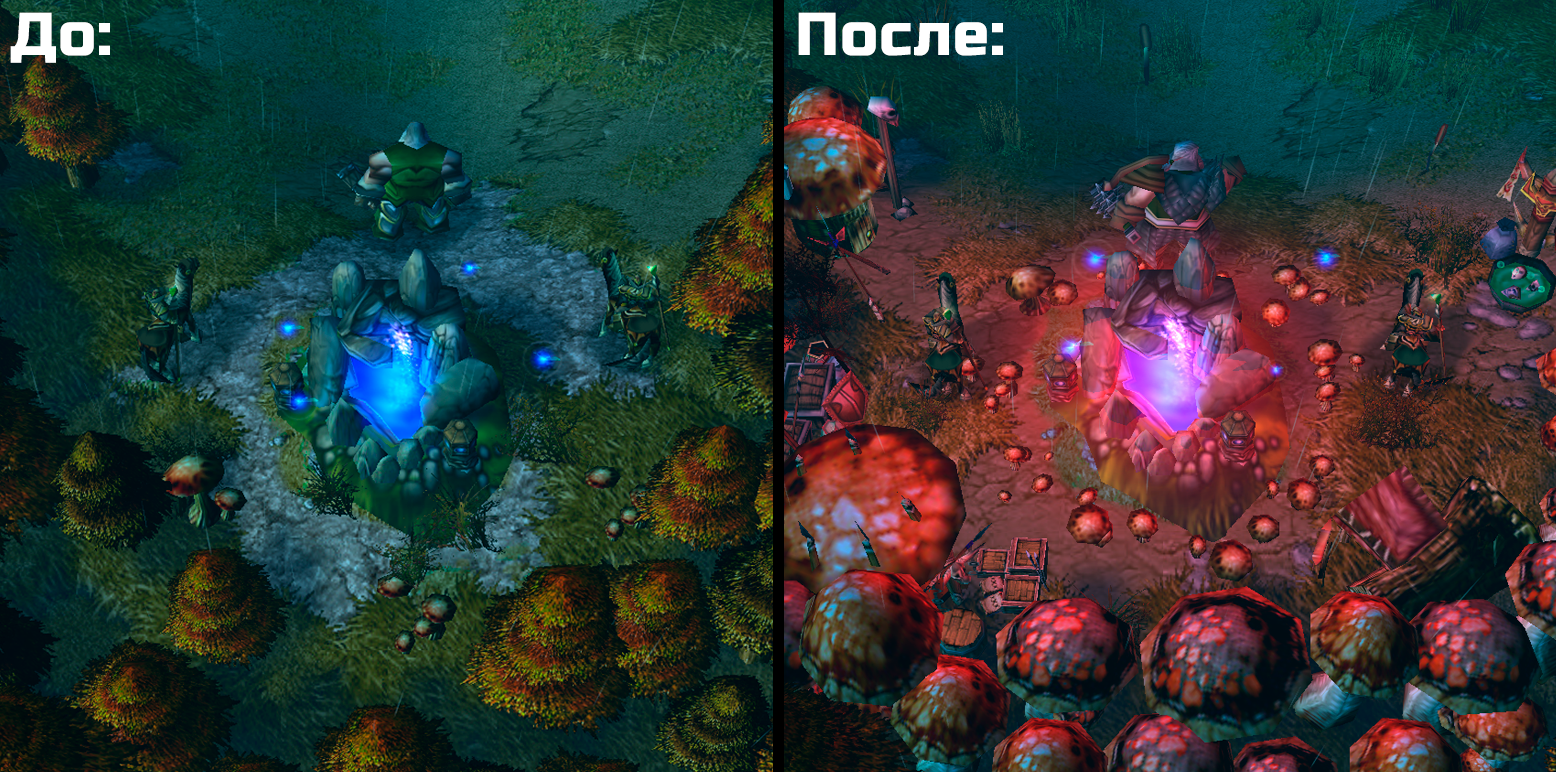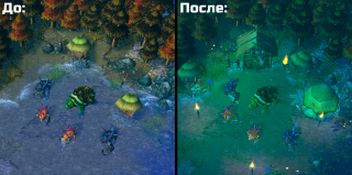 Насчёт освещения. Используется и освещение движка, и Глоу модели. При чём последние двух видов: один вид выглядит, как свет под героями, второй - билбоардед.