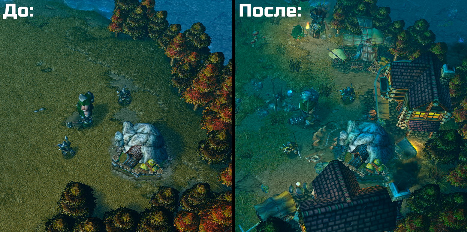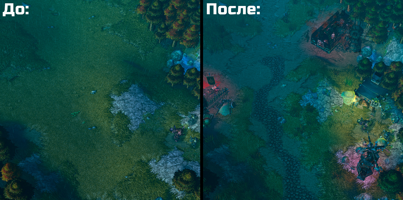 Обновляя карту, мне хотелось передать атмосферу туманного прибрежного поселения, находящегося в упадке. Здесь царит беззаконие, а клочки человеческой цивилизации постепенно сужаются, уступая место дикой природе и монстрам.