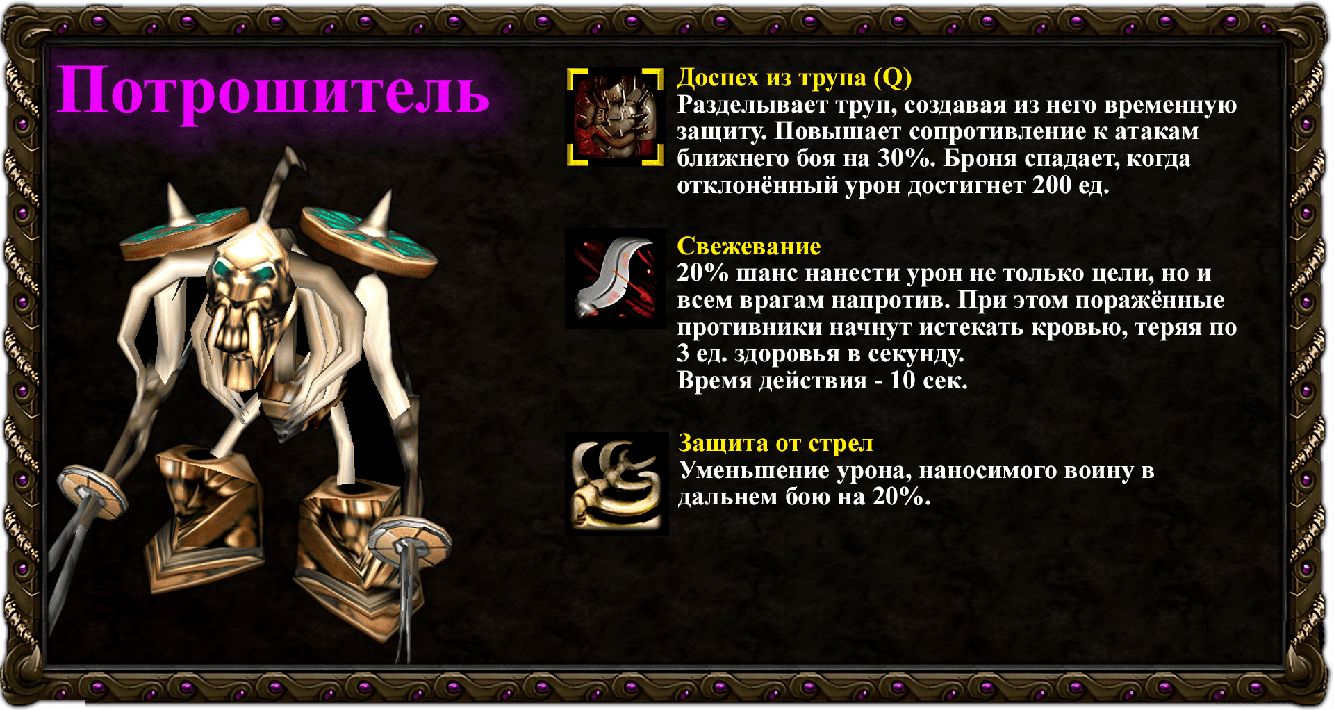 Глобальная модификация, добавляющая море нового контента и совершенствующая Warcraft 3. Игрок сам собирает себе расу из более чем сотни уникальных боевых единиц! Каждый новый юнит имеет свой набор способностей, написанных с нуля. Помимо обычного сражения, представлены новые режимы игры: Резня, Захват Флага, Мутаторы!