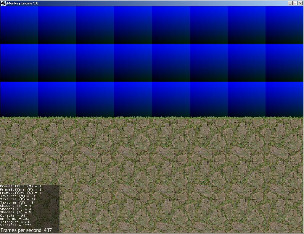 Перед вами результат работы экранного фильтра в одной из реализаций. Нарекания вызывает наложение текстуры на землю, а отладочная информация там где должно быть небо это так и задумывалось.